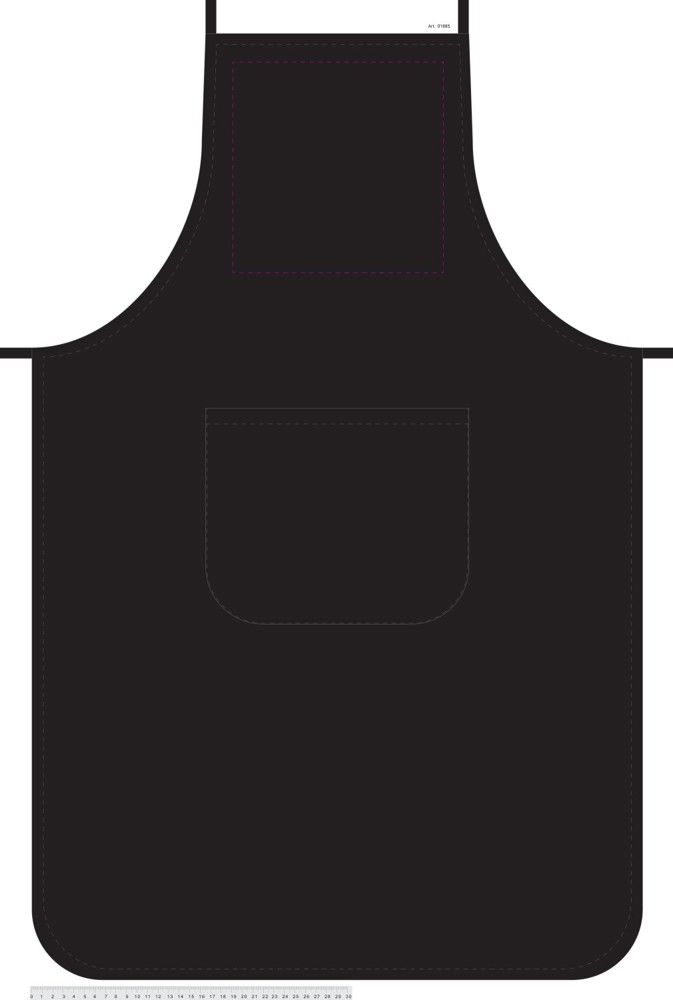 Für alle Profis an Grill und Herd. Hochwertiger schwarze Schürze aus Baumwolle (180 g/qm) mit aufgesetzter Fronttasche. Länge Nackenband: ca. 60 cm. Länge seitliche Bänder: ca. 82 cm.