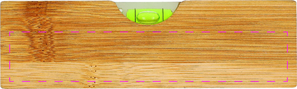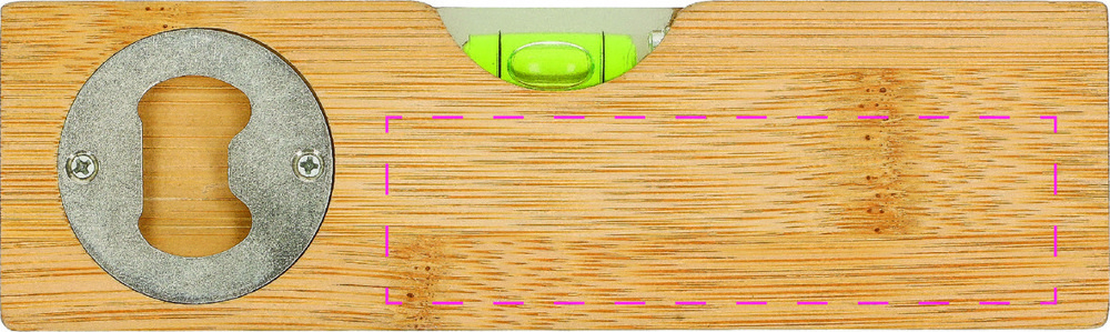 Praktische Wasserwaage aus Bambus in handlicher Größe. Inklusive integriertem Flaschenöffner auf der Rückseite.